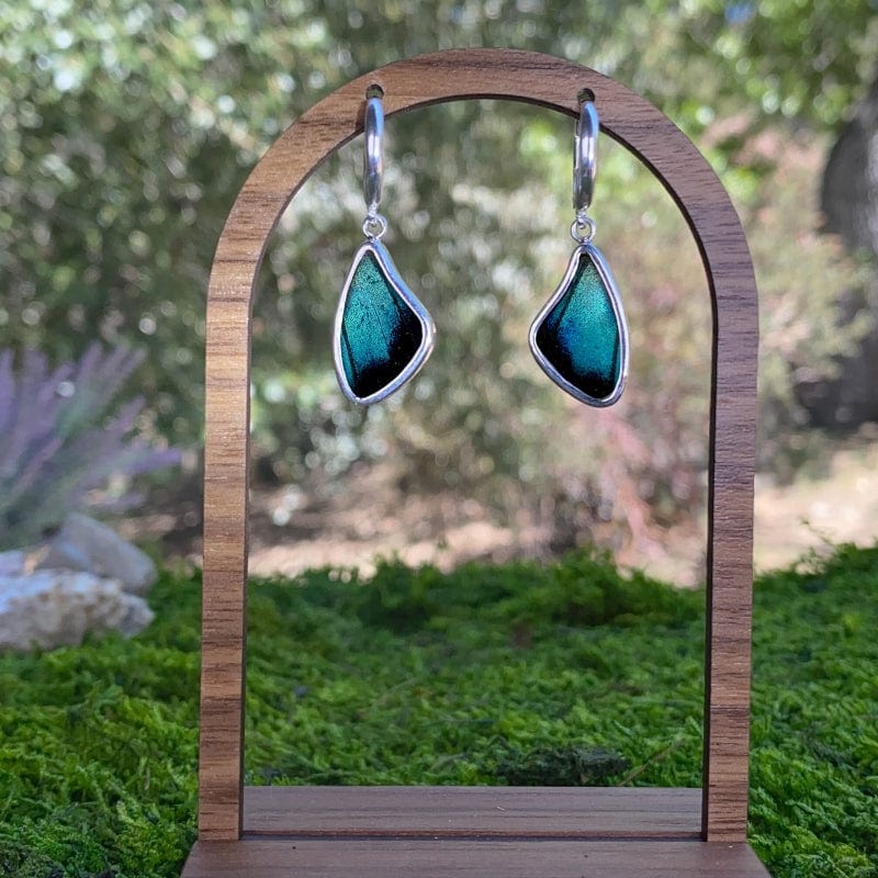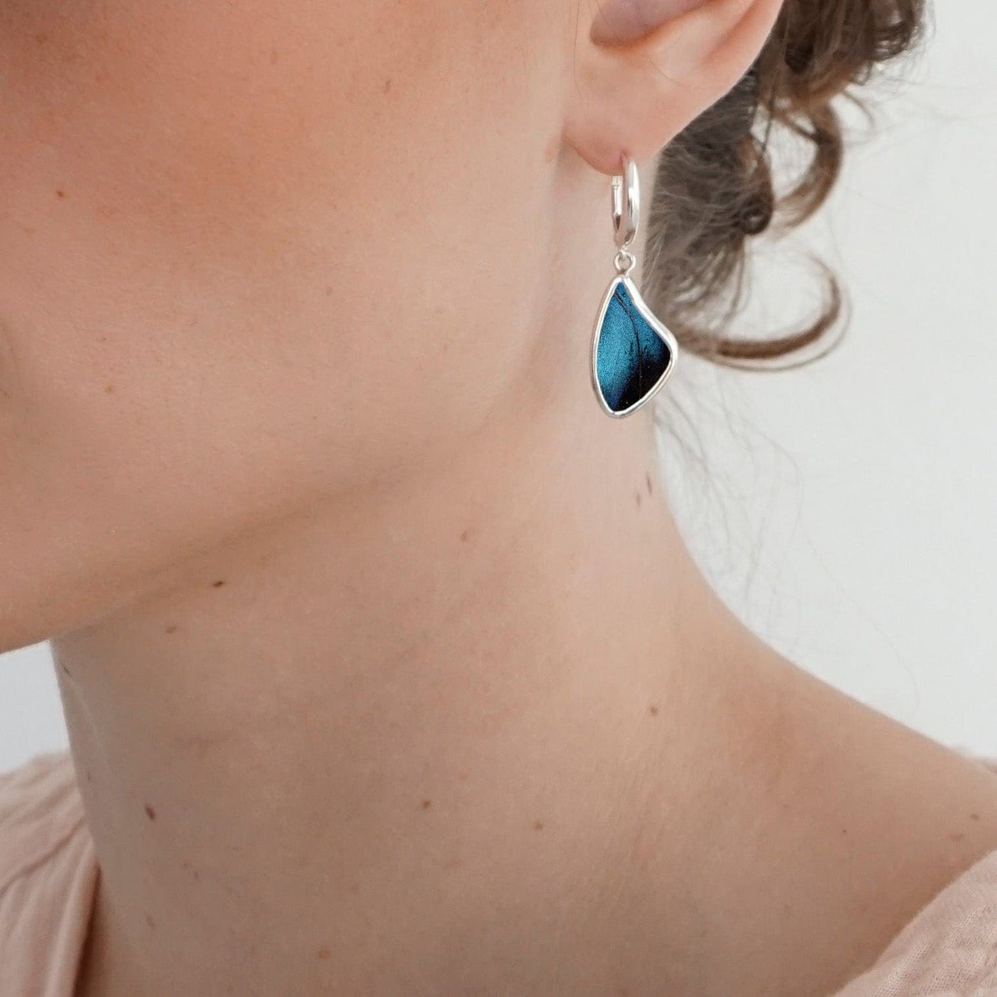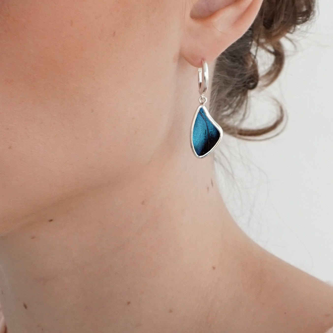 My Store Earrings Real Morpho Achilles Small Wing Shaped Pendant Leverback Earrings In Sterling Silver